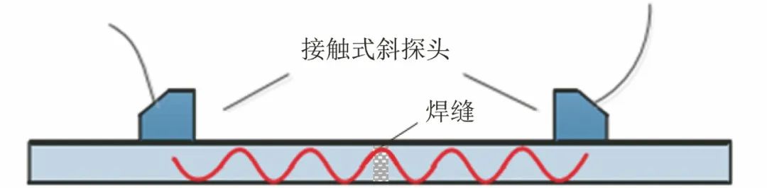 圖3 接觸式雙斜探頭超聲檢測方式示意
