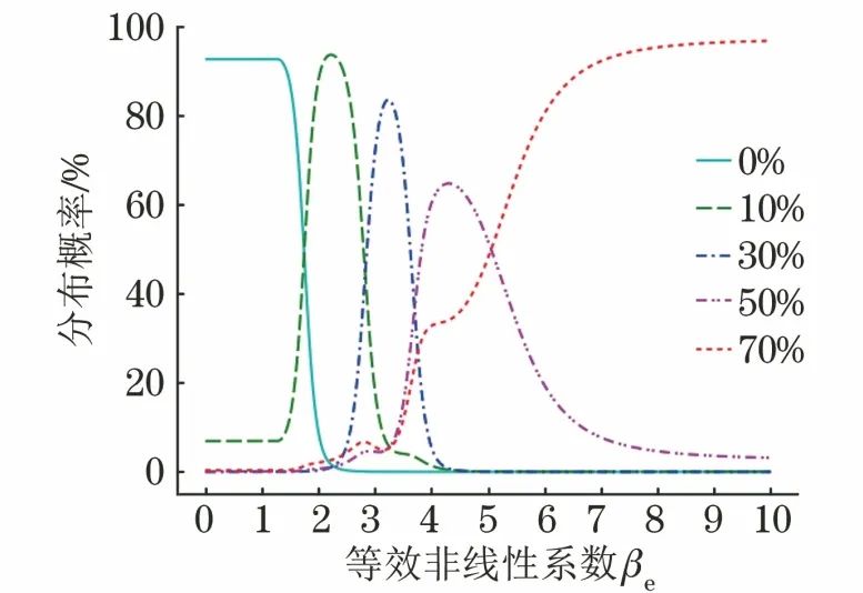 (5) 根據式(7),計算等效非線性系數βe,估計信號的非線性特征,即: