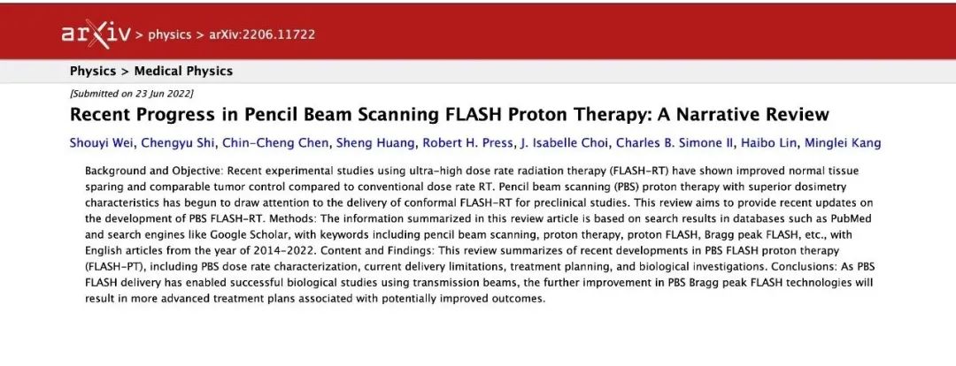 第一個使用FLASH PBS質子束的人體臨床試驗(FAST-01)已經完成批準(注:截至目前,該臨床試驗已經完成,從結果來看,很好地證明了FLASH PBS技術的臨床治療流程的有效性和安全性),預計將有多達10例骨轉移患者入選,以評估臨床工作流程的可行性,治療相關的不良反應,以及通過測量試驗參與者的疼痛緩解來評估治療的有效性。