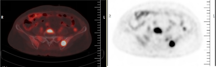 F-18 FDG-PET/CT顯示一名彌漫性大B細胞淋巴瘤患者的嗜FDG樣病變伴骨受累。圖片由Cureus通過CC BY 4.0提供。