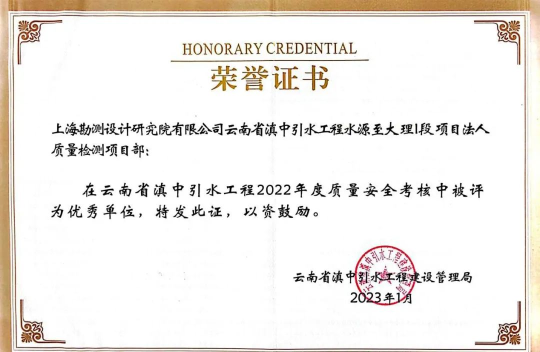 在日復一日的總結檢測經驗、優化檢測流程中,項目部克服各種地質洞段的檢測困難,累計完成老馬槽隧道各類檢測280余組,保障了施工質量,為滇中引水工程水源至大理Ⅰ段共7個標段的質量提供了有力支撐。近日,項目部還被評為2022年滇中引水工程質量安全工作優秀單位。