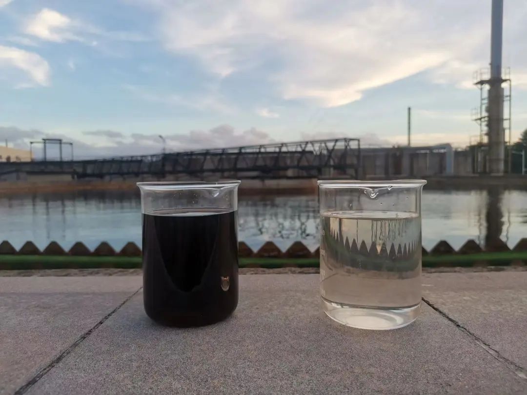 電子束處理印染廢水前后對比