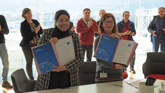 國際原子能機構副總干事兼核科學與應用司司長 Najat Mokhtar 和 ARC-Nucléart 主任 Karine Froment 在周一的簽字儀式上。(照片:ARC-Nucléart)