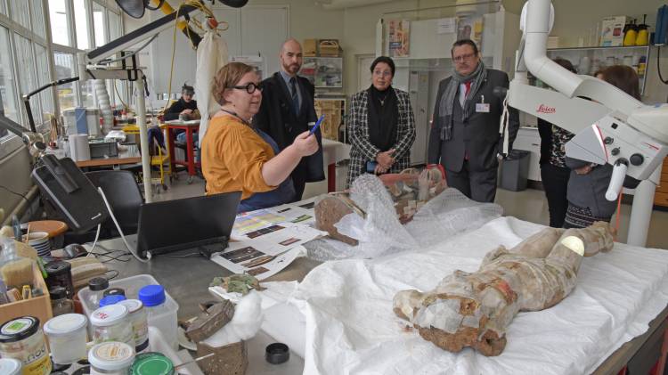 經(jīng)過輻照以保護它們免受食木性昆蟲的侵害后,木雕可以送到車間進行研究和修復。(照片:ARC-Nucléart/ C. Terpent)