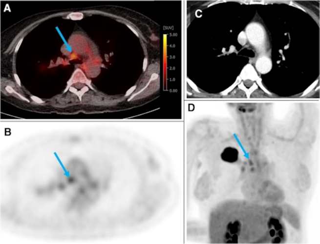 在非小細胞肺癌患者中,胸部淋巴結轉移的準確成像對于治療計劃是至關重要的。作者解釋說,患有N0/1疾病的患者通常需要手術,而患有更廣泛的N2/3疾病的患者需要多模式治療。他們指出,雖然F-18 FDG-PET/CT是最有效的方法,但它可能受到假陽性結果的限制,并且經常需要侵入性活檢來確認可疑病例。