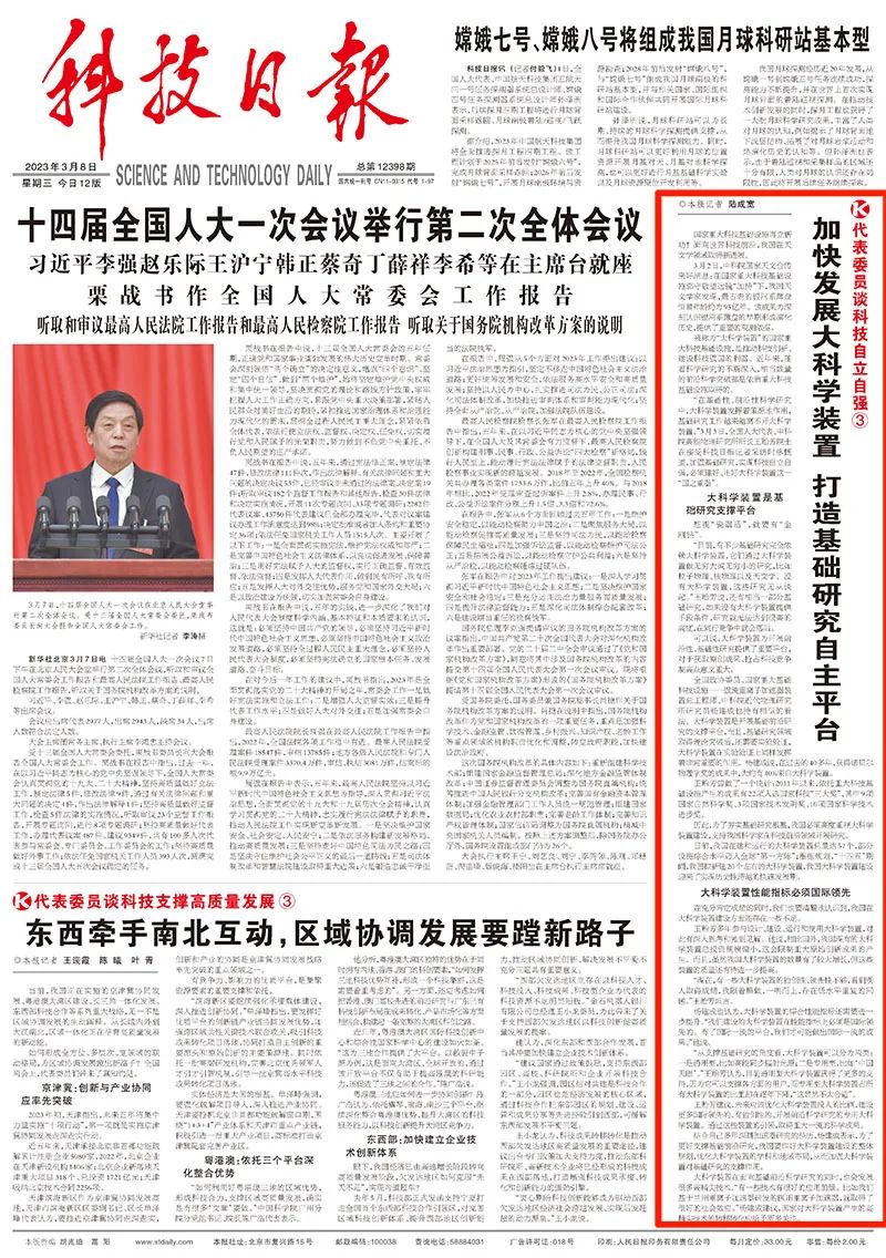 “在基礎性、前沿性科學研究中,大科學裝置發揮著策源地作用,基礎研究工作越來越離不開大科學裝置。”3月3日,全國人大代表、中科院高能物理研究所所長王貽芳院士在接受科技日報記者采訪時感慨道,加強基礎研究,實現科技自立自強,必須建好、用好大科學裝置這一“國之重器”。