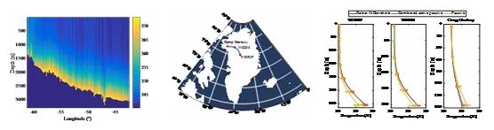 圖2:冰蓋內(nèi)部溫度廓線反演分析區(qū)域及反演結果