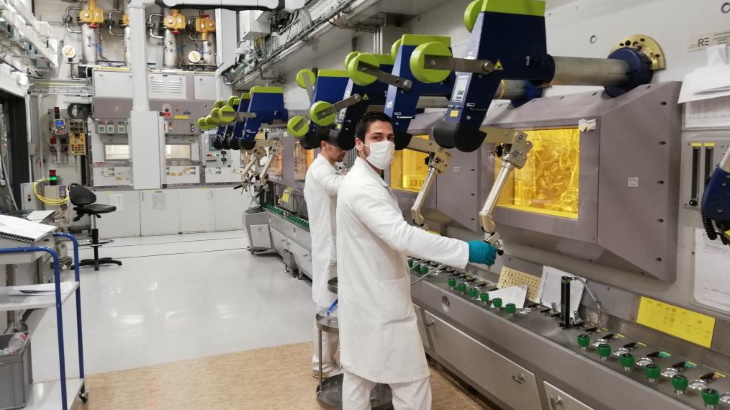在 IRE 的 Fleurus 工廠使用低濃鈾生產 Mo-99(圖片來源:IRE)