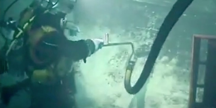 潛水員在水下屏蔽臺上輪班工作長達3.5小時,清理其他技術無法到達的泥漿和碎片。該露天貯存池建于20世紀40年代,是英國核武器計劃的一部分,藻類堆積以及核燃料元件和其他碎片的衰變,使其成為世界上最復雜的清污挑戰之一。