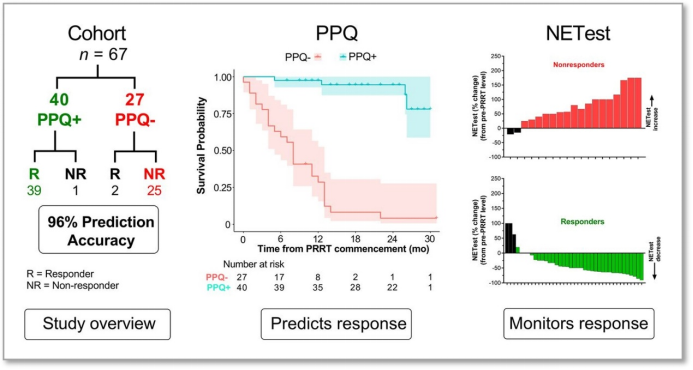 在這項研究的67名患者中,40名被歸類為PPQ+,其中39名(98%)對PRRT有反應。27名患者為PPQ-,該組中有25名患者在出現PRRT后仍表現了疾病進展。PPQ的整體預測準確率為96%。