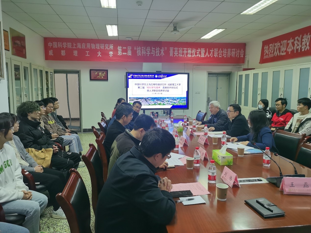 在開班儀式上,朱杰代表核自學院對上海應物所的到來表示熱烈歡迎,并對首屆“核科學與技術”菁英班工作成效及第二屆菁英班工作進展情況進行了介紹。葛良全教授結合工作實際,提出了“核科學與技術”菁英班培養建議和提升路徑。林俊介紹了上海應物所圍繞“核科學與技術”菁英班開展的各項工作情況,他表示,菁英班人才培養目標契合國家科技創新人才需求,同時也是釷基熔鹽堆研究事業發展過程對本-碩-博貫通專業人才培養的進一步探索,雙方聯合培養成效明顯。