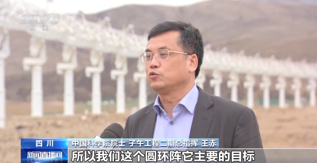 中國科學院院士 子午工程二期總指揮 王赤:空間天氣的源頭來自太陽的爆發活動,所以我們這個圓環陣它主要的目標,就是要探測太陽的活動,這也是我們子午工程二期的一個標志性的設備,在我們子午工程整個的這種日地聯系的鏈條當中,起著一個舉足輕重的地位。