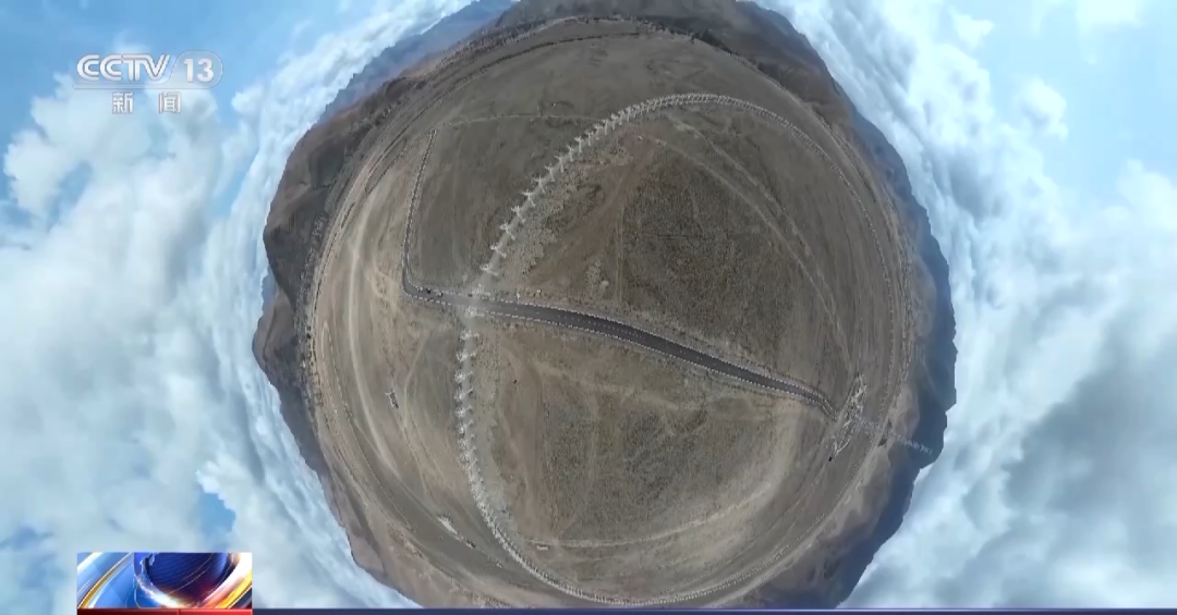 通過我們的航拍鏡頭,從空中可以看到整個望遠鏡陣列的全貌。313臺這樣的天線均勻地分布在直徑一公里的圓周上,圓環中心,是一座百米高的定標塔,向天線發射公共信號,來進行定標和校準。對于這個望遠鏡陣列,當地人有個非常形象的稱呼,那就是“千眼天珠”。
