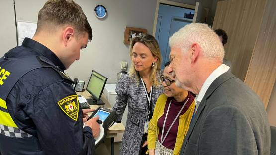在 IAEA 格魯吉亞訪問期間,INServ 小組成員會見了一名警官。(照片:國際原子能機構)