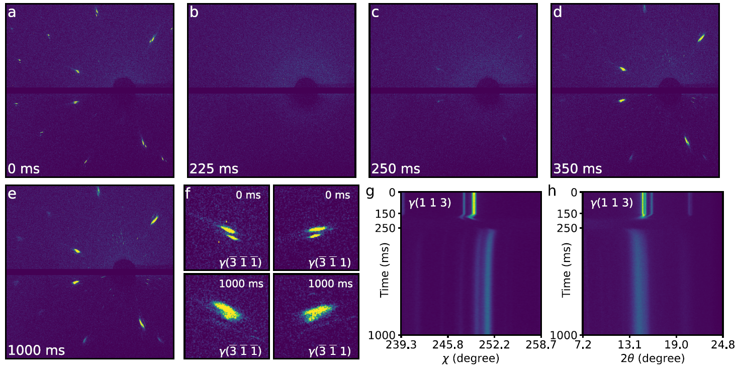 圖1,鎳基單晶高溫合金激光快速熔凝過程中的X射線Laue衍射時間序列圖譜