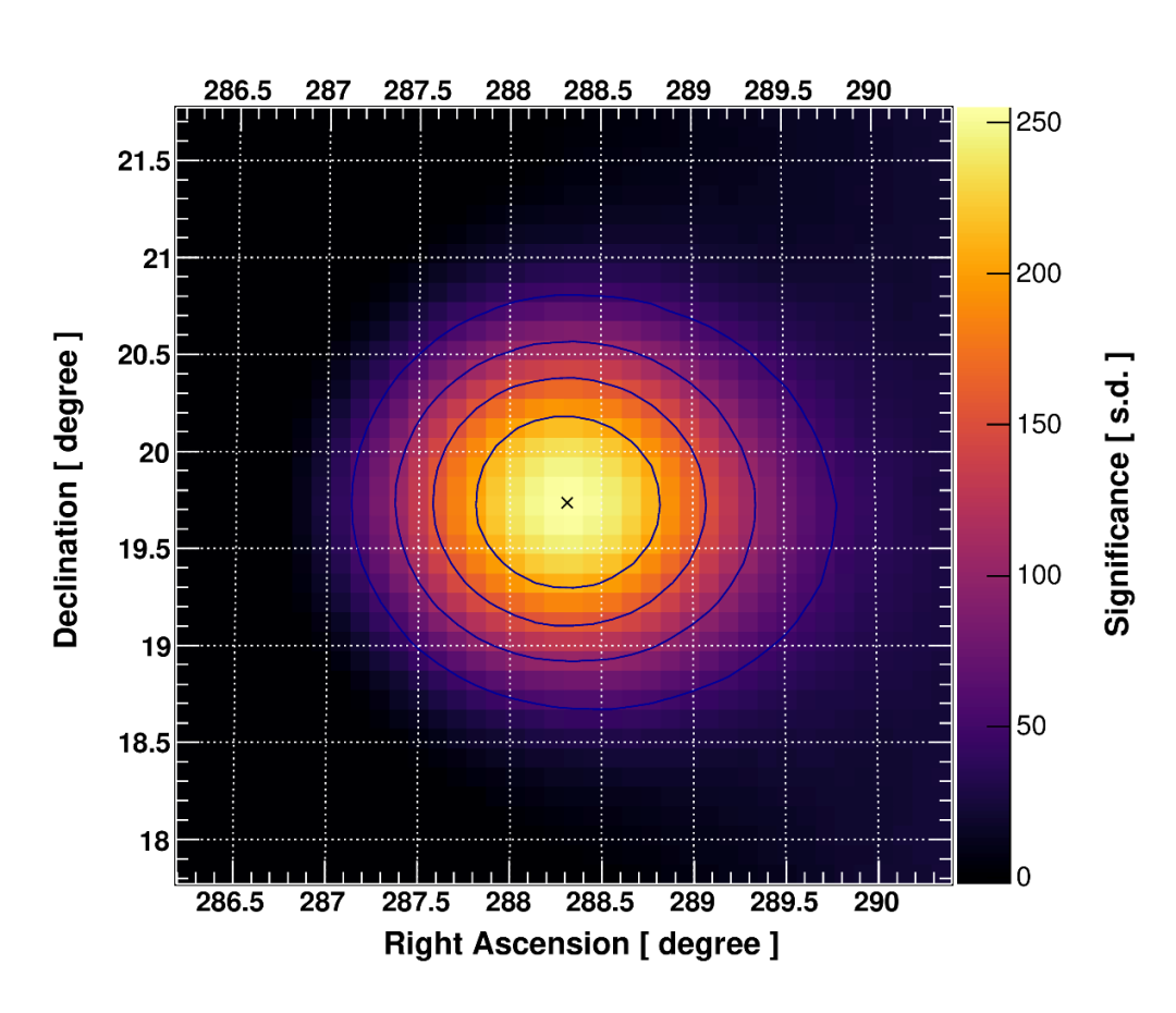 圖1:“拉索”以超過250倍標準偏差的高顯著水平觀測到了伽馬射線暴GRB 221009A的爆發。