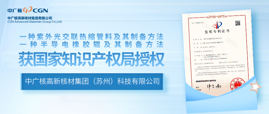 2023年6月6日至13日,中廣核高新核材集團下屬中廣核(蘇州)科技公司兩項發明專利獲得國家知識產權局授權,分別是“一種紫外光交聯熱縮管料及其制備方法”(專利號:ZL 2021 1 1490199.7)和“一種半導電橡膠輥及其制備方法”(專利號:ZL 2021 1 1013979.2),為公司專利技術儲備添磚加瓦,標志著公司科技創新工作再上新臺階。