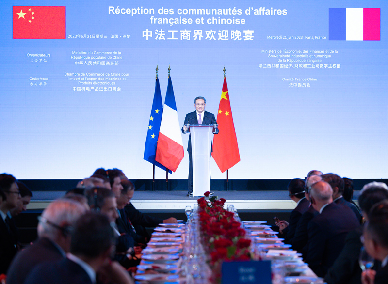 當(dāng)?shù)貢r(shí)間6月21日晚,李強(qiáng)在巴黎出席中法工商界晚餐會(huì)并致辭。法國(guó)經(jīng)濟(jì)、財(cái)政及工業(yè)、數(shù)字主權(quán)部長(zhǎng)勒梅爾和100多名兩國(guó)工商界代表出席。
