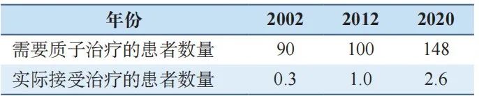表1.全球接受質子治療需求人數與實際治療人數(萬人)