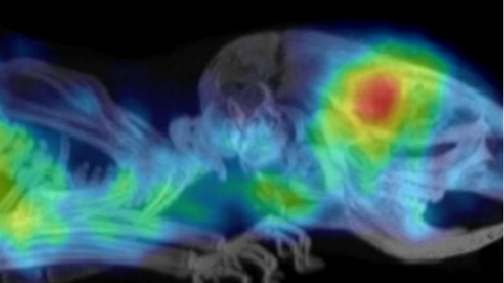 上圖為小鼠模型中的膠質母細胞瘤的PET掃描圖像,圖片來源: ICR的臨床前分子影像團隊