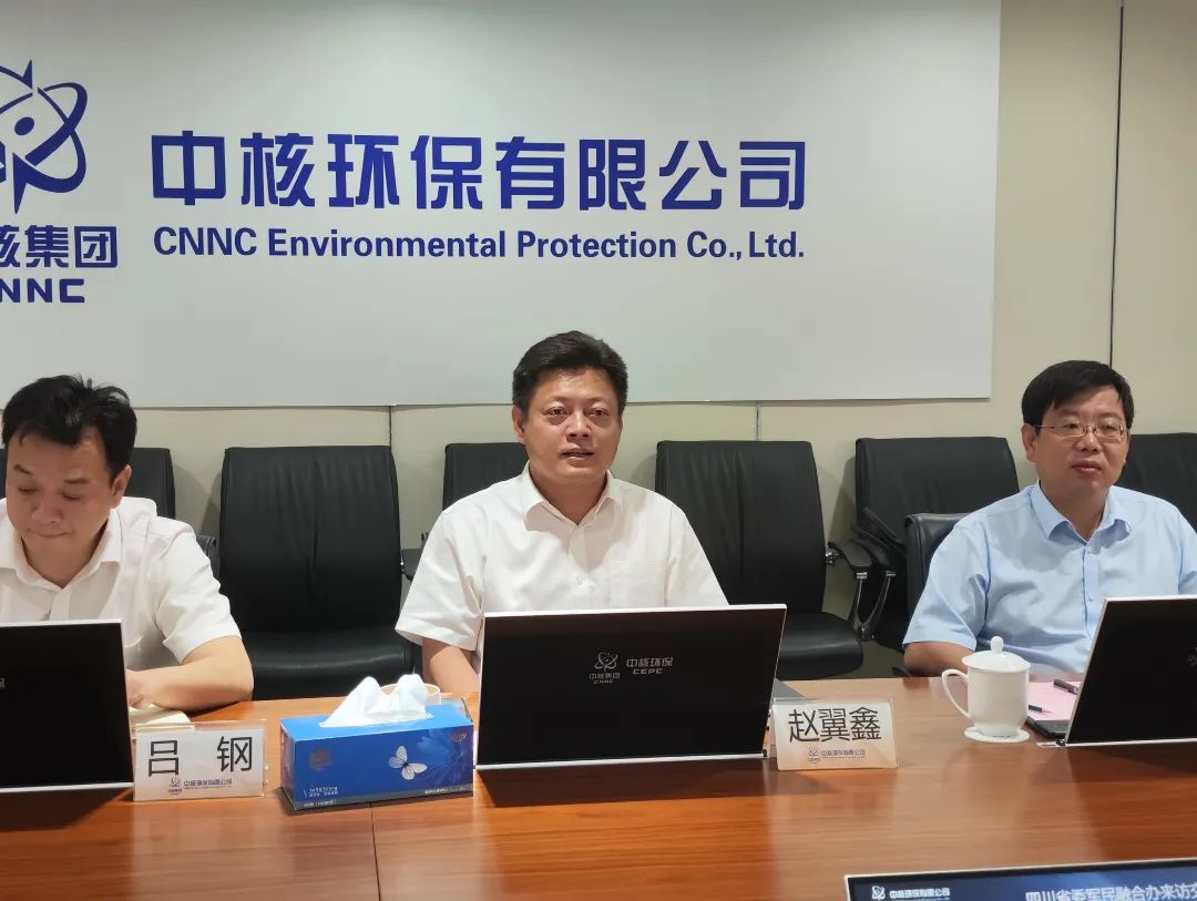 8月30日,中核環保總經理、黨委副書記趙翼鑫在中核100號會見四川省委軍民融合辦公室(以下簡稱四川融辦)副主任施遐一行,雙方就推進中核環保在川企業發展和項目實施進行了交流。