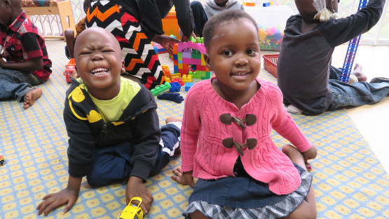 在贊比亞盧薩卡癌癥疾病醫院接受治療的兒童在醫院的托兒所里玩耍。原子能機構和圣裘德兒童研究醫院正在探索擴大兒童癌癥治療機會的方法。(照片:L. Potterton/原子能機構)