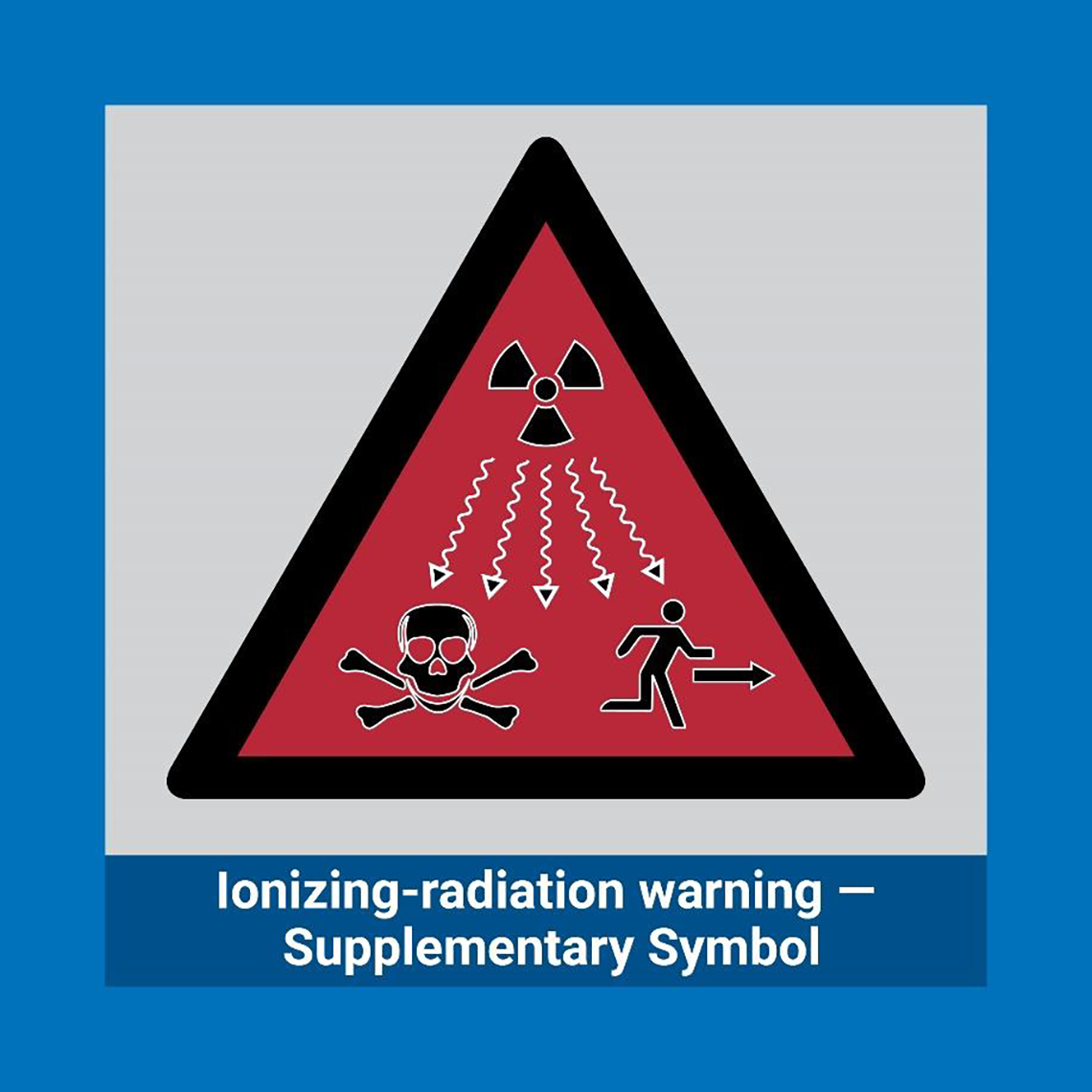 為了確定哪種符號能夠更好地向公眾傳達輻射風險,國際原子能機構對世界不同地區的 11 個國家進行了一項調查。結果是“電離輻射警告——補充符號”,一個紅色三角形,描繪了輻射波、一個頭骨和一個奔跑的人形。它是作為更常用的電離輻射符號的補充而推出的,旨在進一步減少意外暴露于電離輻射的可能性。