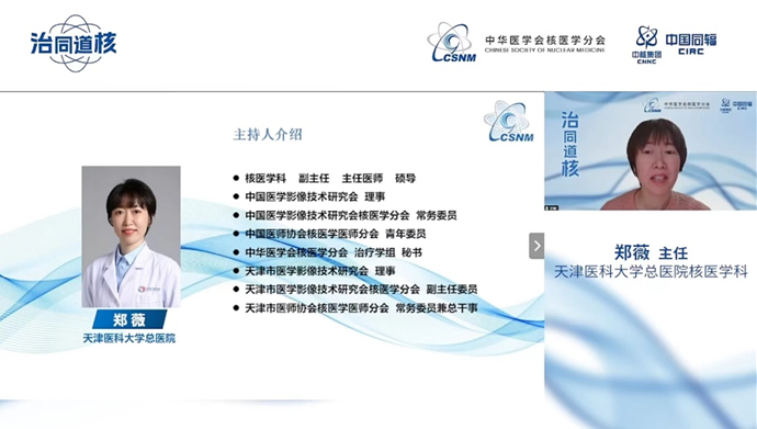 本期分享會由第十二屆中華醫(yī)學(xué)會核醫(yī)學(xué)分會治療學(xué)組秘書長、天津醫(yī)科大學(xué)總醫(yī)院鄭薇教授主持。鄭教授介紹了治療學(xué)組舉辦“治”同道“核”—云上分享會系列活動,主要目的是通過在未來幾年每月舉辦云上分享活動,鼓勵和帶動青年醫(yī)師積極閱讀和分享優(yōu)秀的醫(yī)學(xué)文獻,幫助青年醫(yī)師成長。
