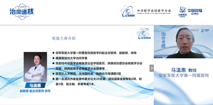中華醫(yī)學(xué)會核醫(yī)學(xué)分會主任委員、第十二屆中華醫(yī)學(xué)會核醫(yī)學(xué)分會治療學(xué)組組長、中國人民解放軍空軍軍醫(yī)大學(xué)第一附屬醫(yī)院汪靜教授在致辭中充分肯定了“治”同道“核”—云上分享會系列活動的意義,積跬步至千里,每月一期的分享會,將會為參與其中的各位醫(yī)師提供寶貴的知識財富,知識日積月累,工作厚積薄發(fā)。