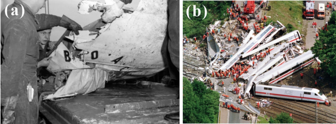 ▲圖1 疲勞失效相關案例:(a)“彗星”號客機殘骸;(b)德國高鐵“ICE 884號”事故照片。圖片來源:(a)https://mp.weixin.qq.com/s/dMWZObGCwHXUl6cuZLqO9g;(b) http://www.kepu.net.cn/blog/imech/201904/t20190401_478648.html目前,為了評價工程構件及各種材料的疲勞可靠性,人們往往依據ASTM、GB等現行測試標準來進行測試,大量長時間的疲勞測試需要采用足夠數量的疲勞試樣進行,以獲得材料的應力幅-壽命曲線和疲勞極限,這種既耗時又耗材的疲勞測試方法在工業界和實驗室已使用了近百年。然而,隨著航空航天、信息、能源、生物醫用及人工智能等高科技領域的飛速發展,低成本、高效率地評價工程材料與構件的疲勞性能、預測在役構件疲勞壽命等需求日益迫切。近期,中國科學院金屬研究所沈陽材料科學國家研究中心的張廣平團隊在前期小尺度材料疲勞行為研究的基礎上,提出了材料疲勞性能需要高通量并快速地進行評價這一理念,設計并建立了一種能夠同時對多個小微試樣進行對稱彎曲疲勞加載測試的系統(圖2),并在系統上對核電、高鐵、汽車等領域用的幾種典型工程材料進行了高通量疲勞測試。該實驗通過對比和計算模擬進行了驗證,建立了材料疲勞性能的高通量測試技術和方法。相關研究以The high-throughput bridge to the rapid evaluation of fatigue reliability of structural engineering materials 為題發表在《國際疲勞雜志》上。