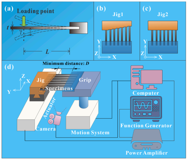 ▲圖2 高通量對稱彎曲懸臂梁疲勞測試系統示意圖
