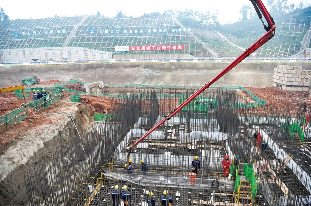 從成都出發,2個小時車程,到達今天的目的地——中國核動力研究設計院醫用同位素試驗堆建設現場,一下車,映入眼簾的就是一片繁忙的景象:眾多忙碌的身影不停穿梭在現場,機器的轟鳴聲不絕于耳。盡管春節剛過,但這里的工作已經馬不停蹄地展開,沒有一絲懈怠。