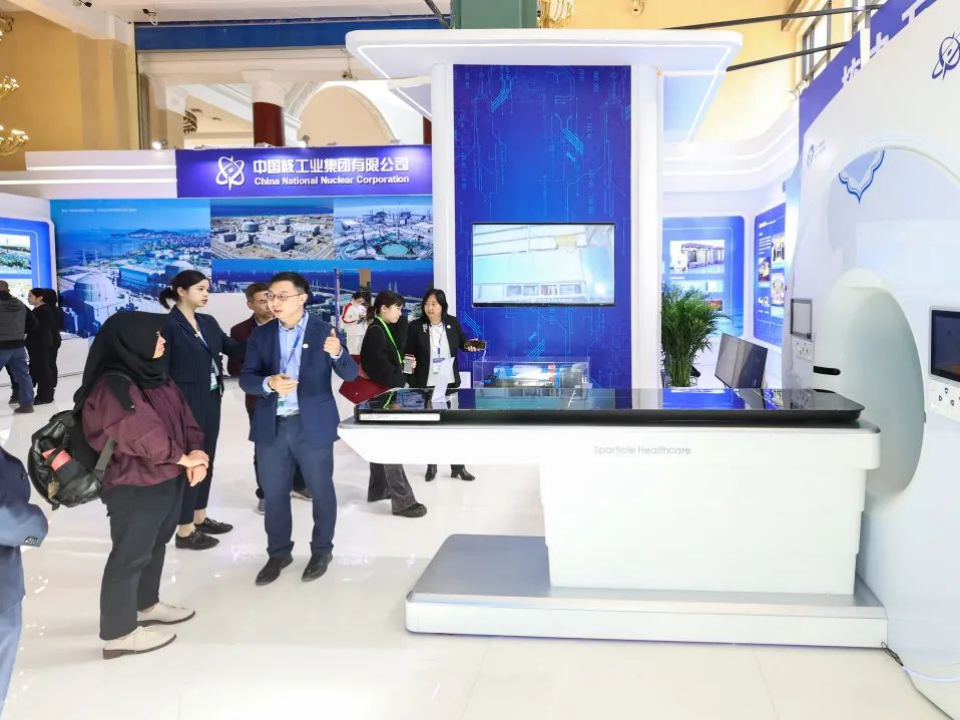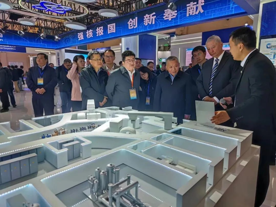 中國科學技術協會書記處書記殷皓,國家原子能機構副主任劉敬,工業和信息化部、生態環境部(國家核安全局)、國家能源局相關司局負責人,中核集團董事長余劍鋒,中國核學會理事長王壽君,中核集團副總經理曹述棟、副總經理馬文軍、總會計師王學軍以及來自國內外的政府官員、企業代表和專家參觀了中核集團核醫療裝備展臺。