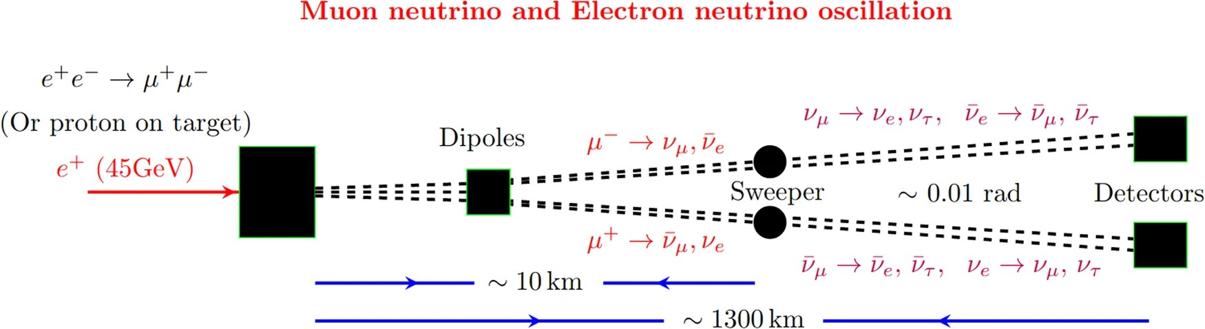 這些繆子束流最終衰變成相關的中微子,中微子傳播基線為1300公里