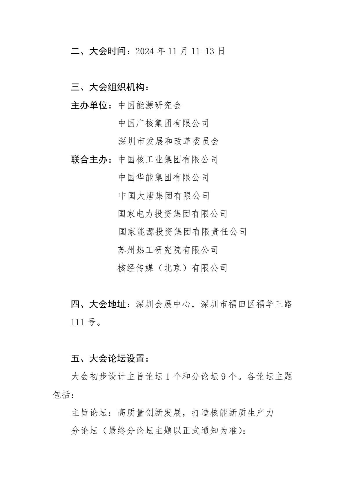 關于召開2024第三屆中國核能高質量發展大會暨深圳國際核能產業創新博覽會的預通知