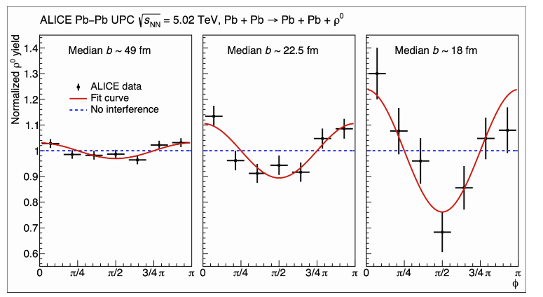 使用57,000的數(shù)據(jù)集 0 在大型強(qiáng)子對撞機(jī)運(yùn)行期間,以每對核(質(zhì)子和中子)每對5.02太電子伏特的能量發(fā)生的鉛鉛碰撞中產(chǎn)生的介子,愛麗絲小組測量了COS(2)。 φ )的調(diào)制 0 沖擊參數(shù)不同值的產(chǎn)量。測量結(jié)果表明,調(diào)制的強(qiáng)度隨撞擊參數(shù)的變化很大,影響參數(shù)的值為飛毛腿(見下圖)。理論上的計算表明,這種行為確實(shí)是量子干涉效應(yīng)的結(jié)果。