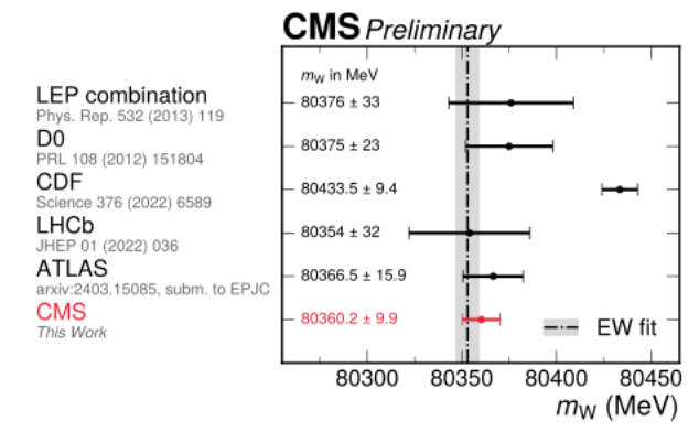 在全球范圍內(nèi)進(jìn)行的移棲動(dòng)物試驗(yàn) 它的第一個(gè)W玻色子質(zhì)量測(cè)量。該結(jié)果的不確定度為9.9Mev,與CDF測(cè)量的精度相當(dāng),與以前所有的測(cè)量結(jié)果一致,除了CDF的結(jié)果。