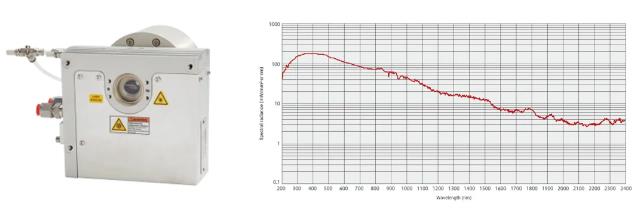 EQ-400以其卓越的均勻性和高亮度光線而著稱,波長(zhǎng)覆蓋范圍從170 nm到2500 nm,這一寬廣的光譜輸出使其在市場(chǎng)上的同類產(chǎn)品中脫穎而出。過(guò)去,科學(xué)家不得不依賴多種光源(如氘燈、鎢/鹵素?zé)艉碗?來(lái)實(shí)現(xiàn)如此廣泛的光譜覆蓋。然而,EQ-400以其超過(guò)100 mW/mm²·sr·nm的典型輻射強(qiáng)度和超過(guò)10 mW/nm的光譜功率,成為高功率應(yīng)用的理想選擇。
