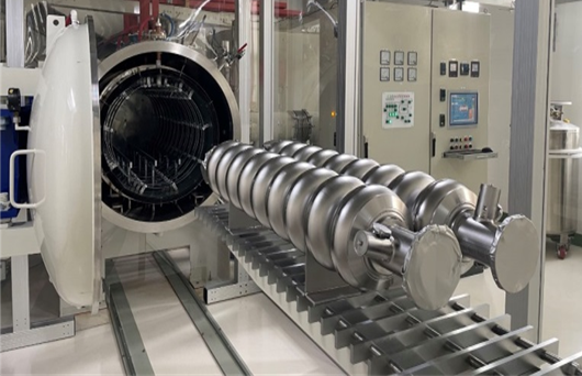 該團隊提出了將中溫退火技術(shù)應用于國內(nèi)外使用最為廣泛1.3 GHz 9-cell超導腔的創(chuàng)新思想,并成功用于超導腔的具體研發(fā)中,最終1.3 GHz 9-cell和650 MHz兩種超導腔在性能方面取得了重大突破和創(chuàng)新成果,超導腔品質(zhì)因數(shù)測試結(jié)果處于國際領(lǐng)先,超導腔加速梯度測試結(jié)果達到國際一流水平,在國際上產(chǎn)生了重要影響。這項成果具有完全自主知識產(chǎn)權(quán),使我國高性能超導腔技術(shù)跨入世界前列,而且已用于我國基于高品質(zhì)因數(shù)超導腔的加速器建造,被我國的高重頻自由電子激光裝置和大型環(huán)形正負電子對撞機(CEPC)以及國外超導加速器設計方案所采用。