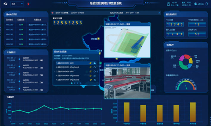 同方威視的安檢聯網系統實現了對物流快遞行業中各層級、各環節的遠程監控和管理。 安檢員的工作狀態、設備的在線情況以及海量的業務情況全部匯聚于監管中心。利用數據挖掘引擎進行智能分析以進行預警、安全評估、資源優化配比,實現各區域站點的統籌監控管理。通過豐富的功能模塊,同方威視為物流企業提供了全面的安全監管能力。