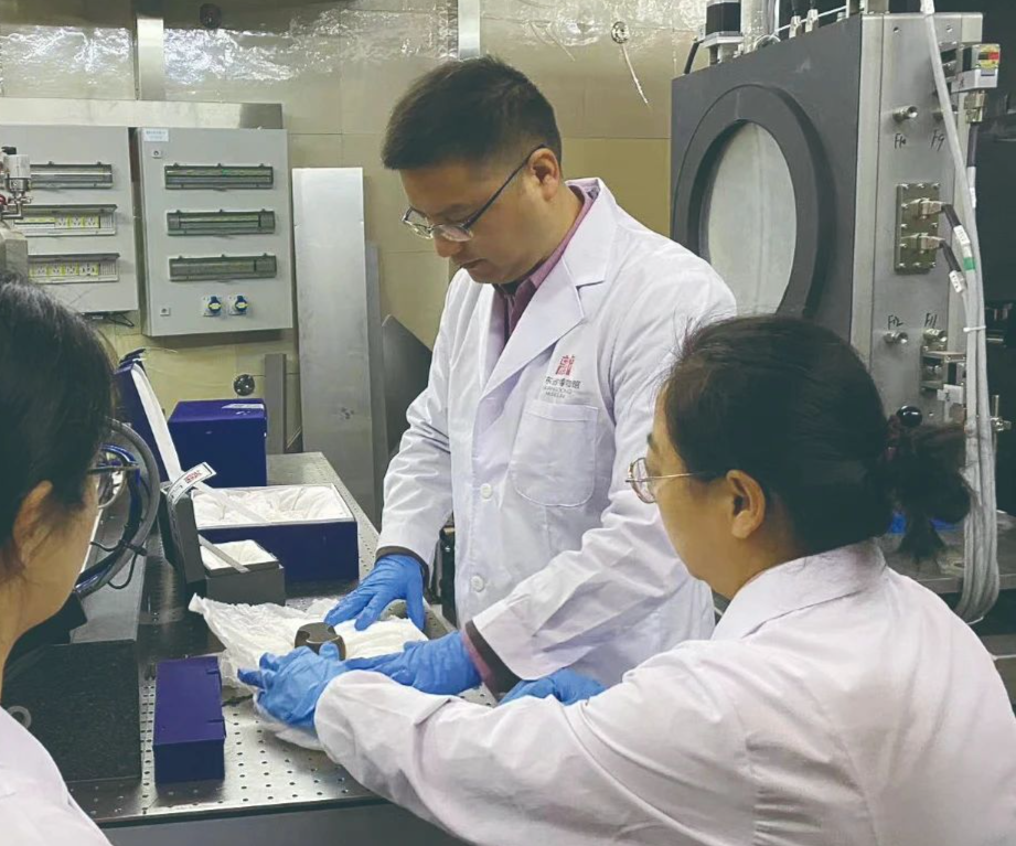 廣東省博物館技術(shù)人員利用中國散裂中子源進(jìn)行文物檢測(cè)。 中國科學(xué)院高能物理研究所供圖