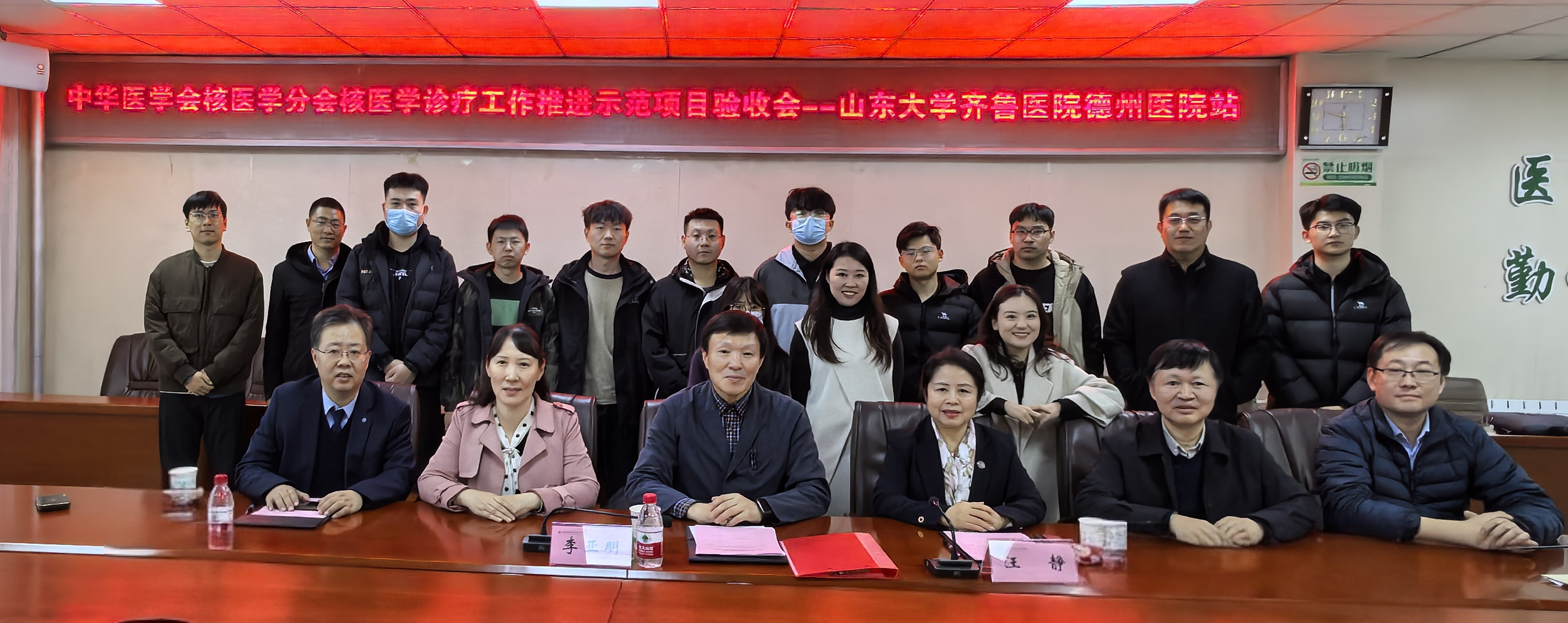 中華醫學會核醫學分會主任委員、西京醫院汪靜教授,中國核學會核醫學分會理事長、中國醫科大學附屬第一醫院李亞明教授、山東省醫學會核醫學分會主委、山東省省立醫院核醫學科主任姚樹展教授、山東省醫學會核醫學分會候任主委、齊魯醫院核醫學科主任李昕教授等專家到場考察核醫學診療工作,經綜合評價該院核醫學科自示范項目啟動以來取得了顯著成績,達到驗收標準,專家組一致同意“核醫學分會核醫學診療工作推進示范項目” 通過驗收。德州市人大常委會副主任、山東大學齊魯醫院德州醫院黨委書記王曉東、德州市衛生健康委員會副主任、二級調研員孫大鵬、山東大學齊魯醫院德州醫院黨委委員、副院長孫念政、山東大學齊魯醫院德州醫院核醫學科副主任劉宏偉等參加了評審交流會。