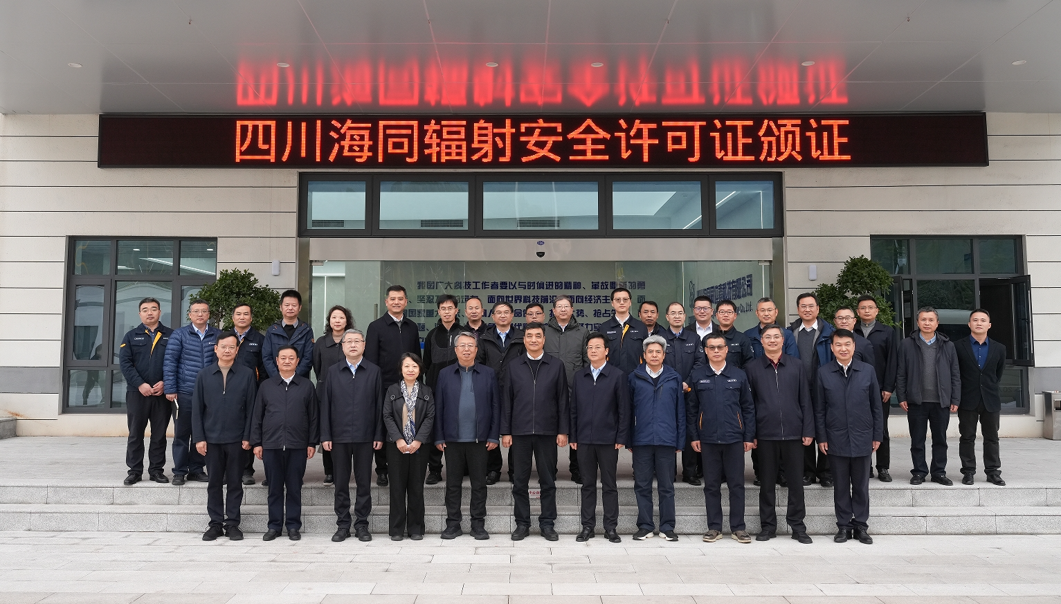 調研期間,董保同向核動力院黨委書記姚剛頒發了四川海同同位素科技有限公司輻射安全許可證。