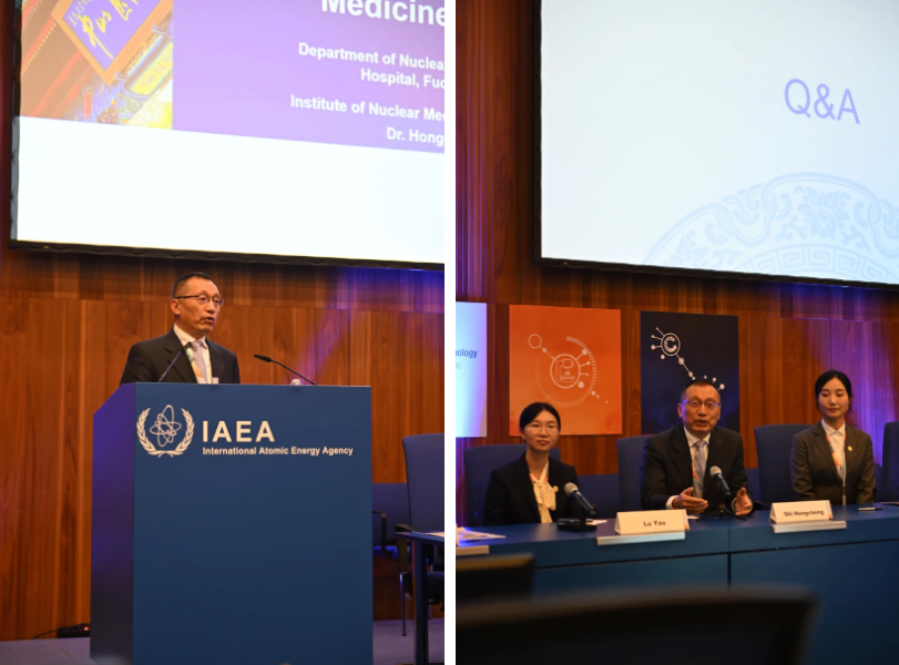 中華醫(yī)學(xué)會(huì)核醫(yī)學(xué)分會(huì)候任主委石洪成教授應(yīng)邀出席并作了題為"Radiopharmaceutical and nuclear medicine in China"的報(bào)告,介紹了中國(guó)放射性藥物商業(yè)化供給的現(xiàn)狀與發(fā)展?jié)摿εc前景,分享了中國(guó)臨核醫(yī)學(xué)的發(fā)展?fàn)顩r與臨床服務(wù)能力,并以復(fù)旦大學(xué)附屬中山醫(yī)院核醫(yī)學(xué)科為例展示了中國(guó)臨床核醫(yī)學(xué)所具有的內(nèi)涵。石教授總結(jié)時(shí)道:中國(guó)目前有越來(lái)越多的放射性藥物應(yīng)用于臨床并造福于病人,中國(guó)核醫(yī)學(xué)正處于快速發(fā)展階段并走向國(guó)際化,越來(lái)越多的資源在推動(dòng)中國(guó)臨床核醫(yī)學(xué)與基礎(chǔ)的研究,核醫(yī)療人員培訓(xùn)等方面也穩(wěn)步前行。國(guó)際原子能機(jī)構(gòu)培訓(xùn)部的負(fù)責(zé)人提到:如何看待與國(guó)際原子能機(jī)構(gòu)共同開(kāi)展培訓(xùn)工作。石教授回答:中華醫(yī)學(xué)會(huì)核醫(yī)學(xué)分會(huì)愿意與國(guó)際原子能機(jī)構(gòu)合作,一定盡全力做好培訓(xùn)工作。中華醫(yī)學(xué)會(huì)核醫(yī)學(xué)分會(huì)始終秉承“同一個(gè)地球,同樣的核醫(yī)學(xué)”,愿意為全球核醫(yī)學(xué)的共同發(fā)展做出我們的貢獻(xiàn)。會(huì)后,石教授還與多位國(guó)際友人就在推動(dòng)核醫(yī)學(xué)發(fā)展過(guò)程中所關(guān)注的問(wèn)題進(jìn)行了交流。
