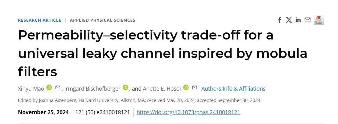 2024年11月,麻省理工學院的學者在期刊 Proceedings of the National Academy of Science上發表了一篇題為Permeability–selectivity trade-off for a universal leaky channel inspired by mobula filters(受蝠鲼過濾器啟發的通用漏通道的滲透性-選擇性權衡)。在此研究中,研究者們使用了增材制造技術設計并制造了一種新型的水過濾器。