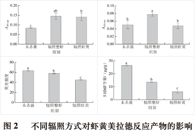 2、不同輻照處理方式下蝦黃的美拉德反應產物變化