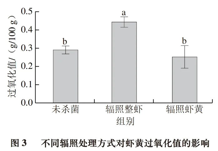 3、不同輻照處理方式下蝦黃的過氧化值變化