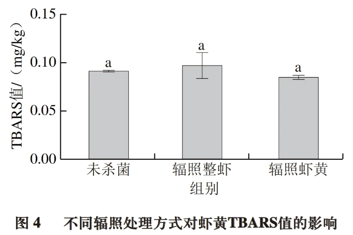 4、不同輻照處理方式下蝦黃的TBARS值變化