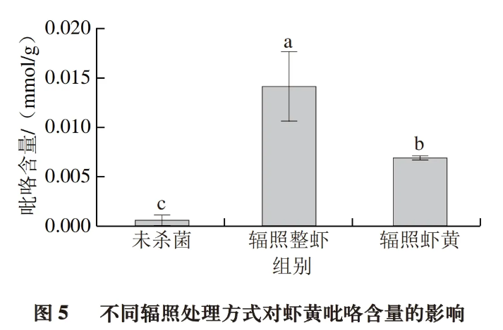 5、不同輻照處理方式下蝦黃的吡咯含量變化