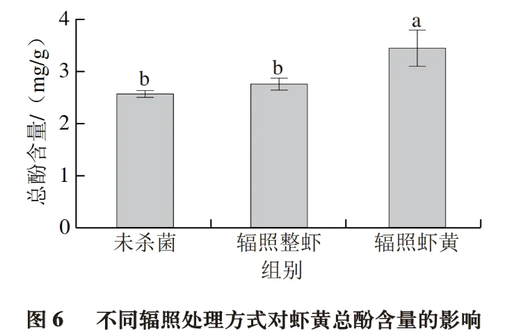 6、不同輻照處理方式下蝦黃的總酚含量變化